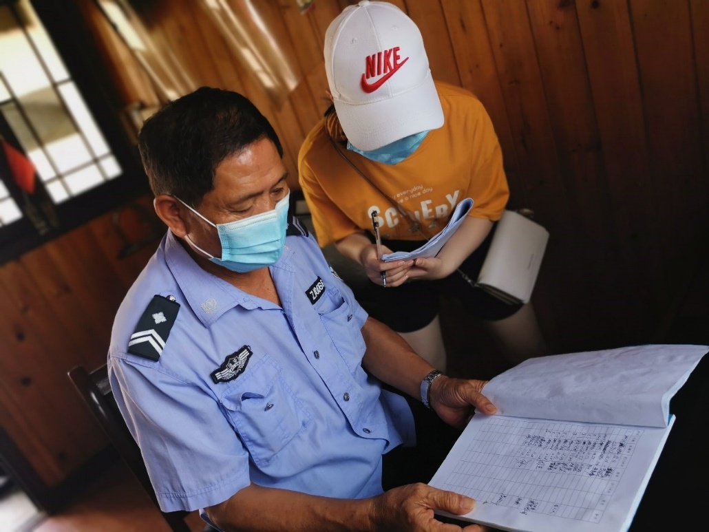 (图为桑植本地的实践队员正在采访贺龙纪念馆的工作人员)